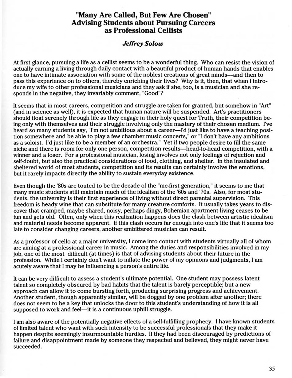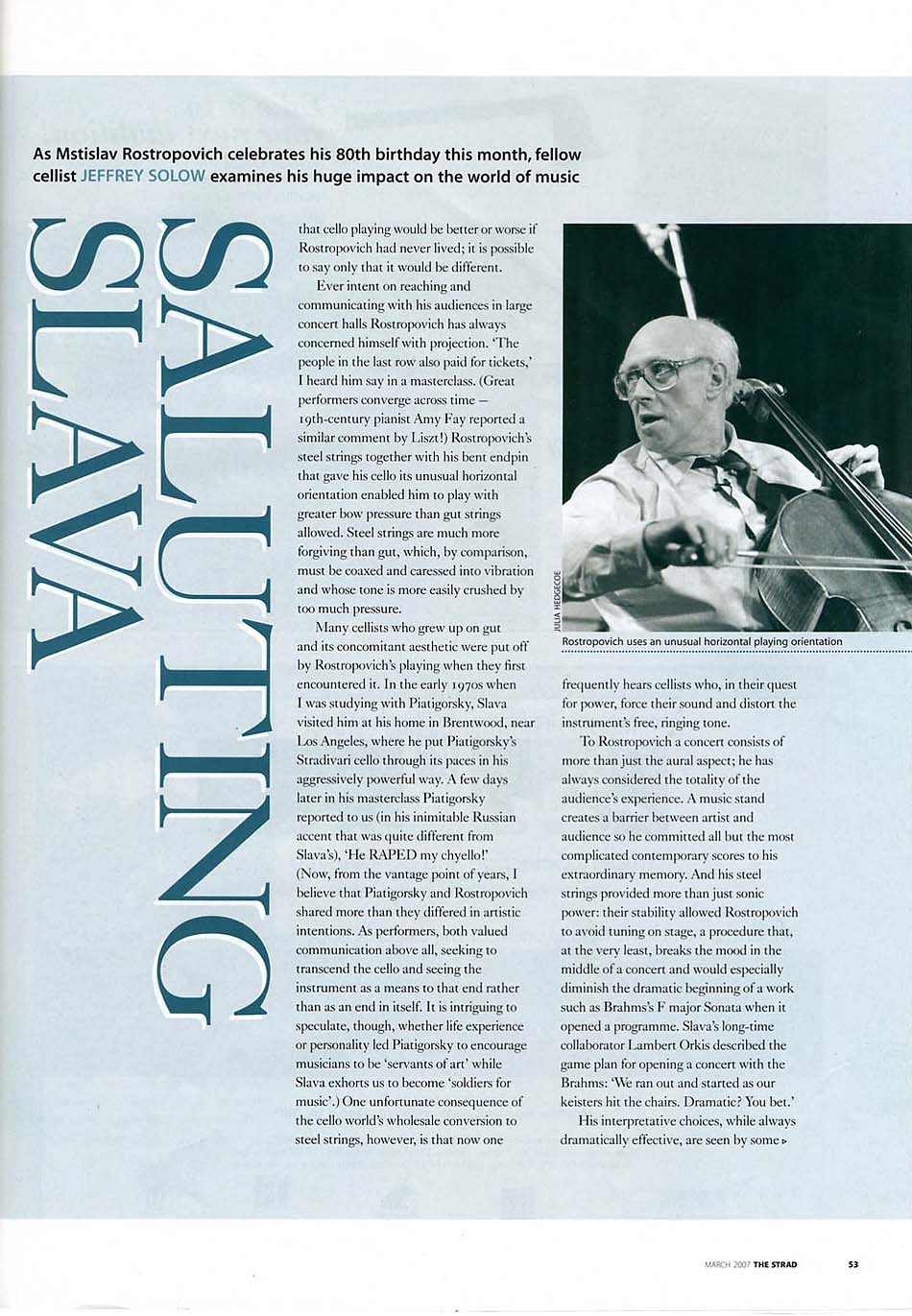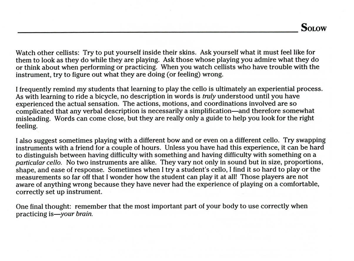 | Here you can read some of my articles, book and sheet music reviews, as well as program notes. I have many more program notes, mostly for cello sonatas and piano trios, and in case you might like to use some of them, please contact me. I will be happy to tell you for which works I have written notes and grant permission to use them. My only request is that I be given proper credit. Thank you! Jeffrey Solow solowcello@gmail.com |